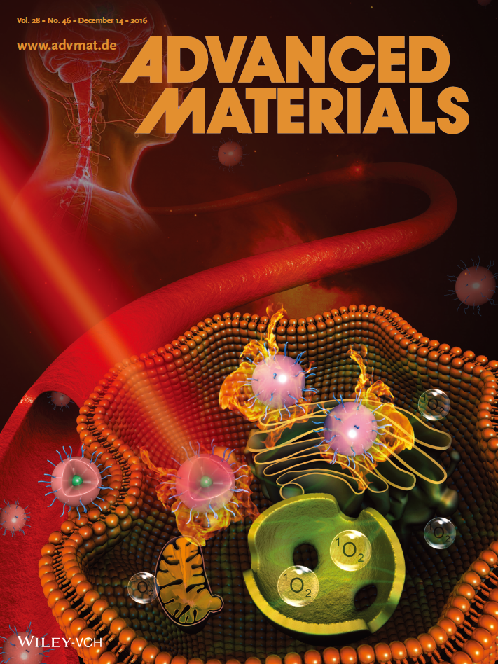 近日,课题组利用贵金属铂的重原子效应和d-d过渡态诱导Bodipy自组装胶束产生超低辐射跃迁,显著提高单线态氧量子产率和光热转换效率,实现肿瘤光动力/光热协同治疗。此研究工作发表于Adv Mater,被选为当期Inside Back Cover,并被Materials View、X-Mol等媒体作为亮点报道。