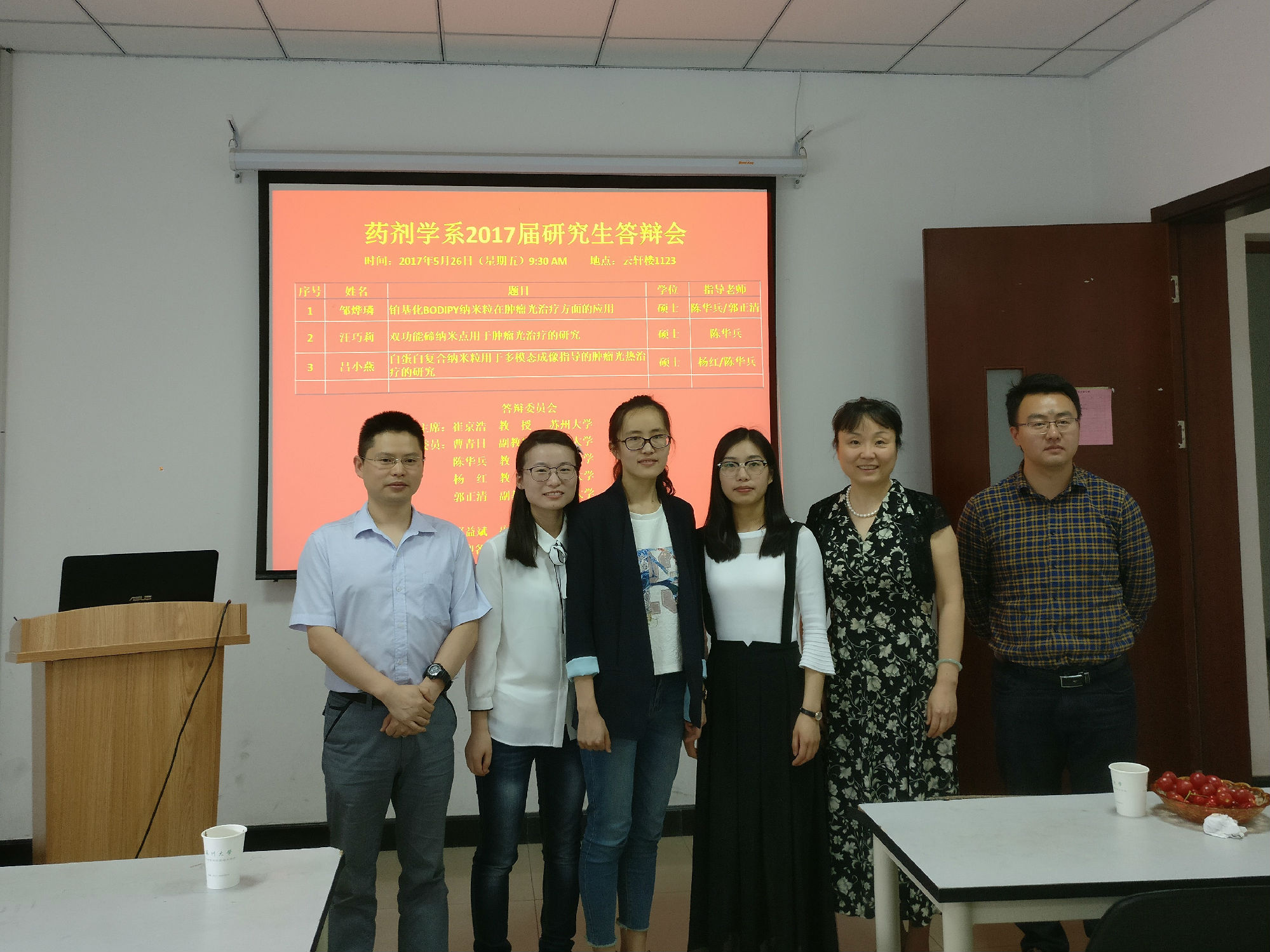 2017年5月26日,课题组研究生邹烨璘、汪巧莉、吕小燕顺利完成硕士研究生毕业答辩。